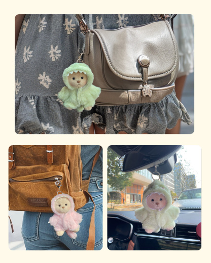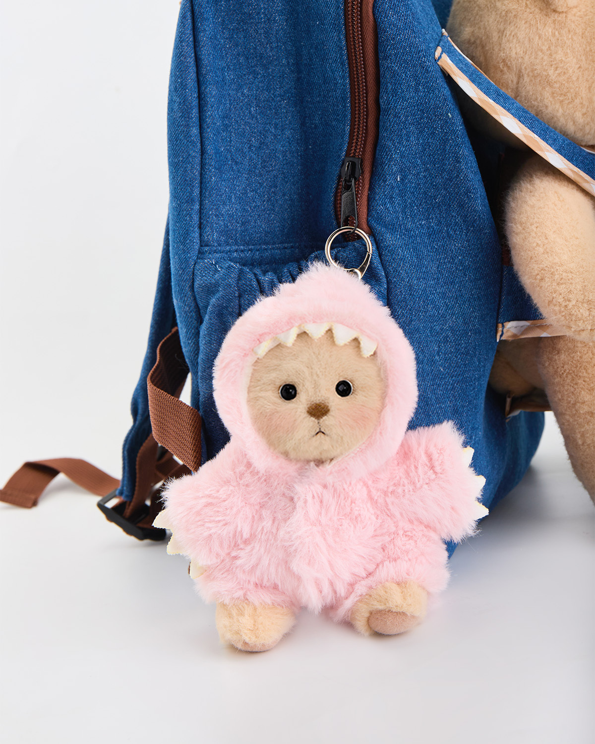 Getahug 5.9 Inches Furry Dino Brown Mini Bear Bag Charm Pendant Keychains Gift (Presale)