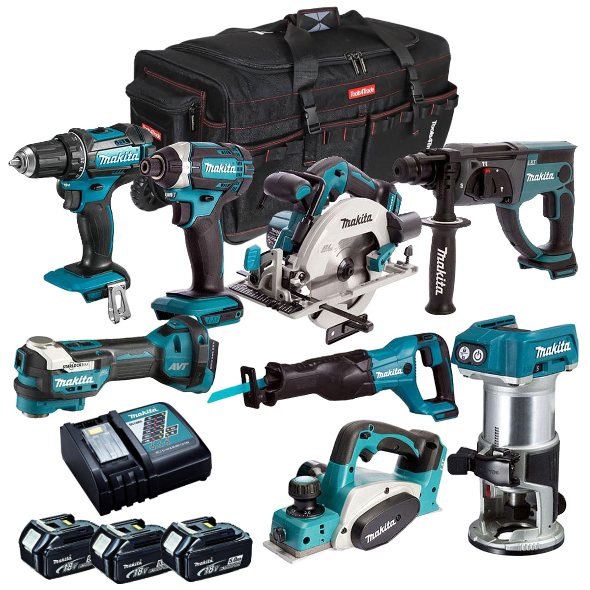 Makita 18V 8 Piece Power Tool Kit with 3 x 5.0Ah Battery Charger & Bag T4TKIT-12996