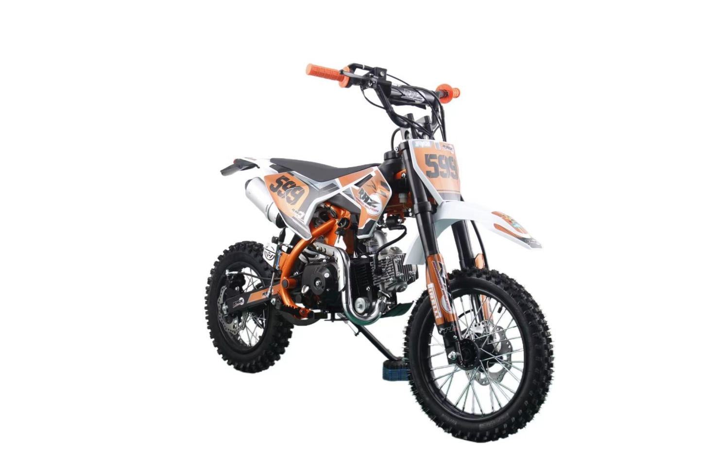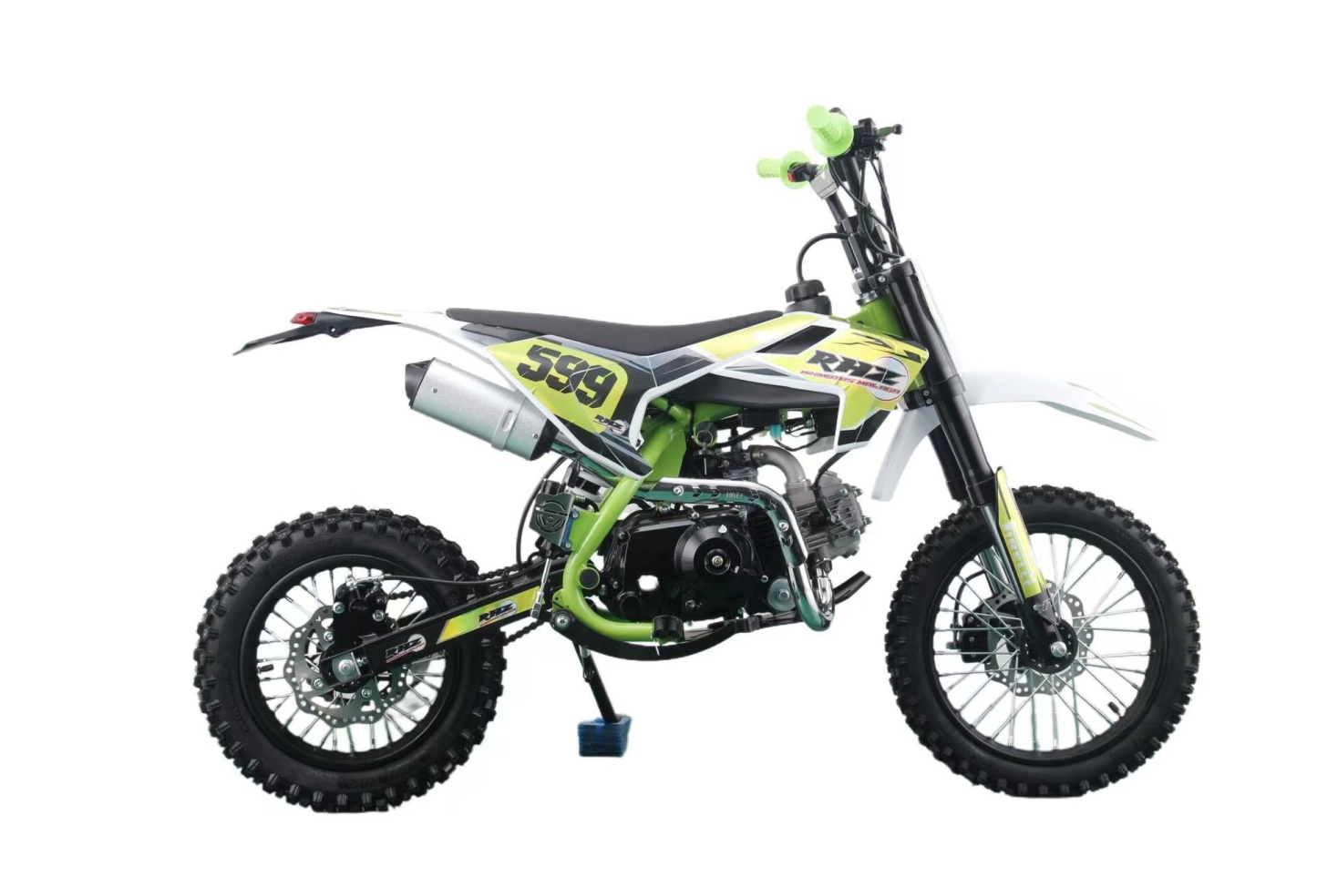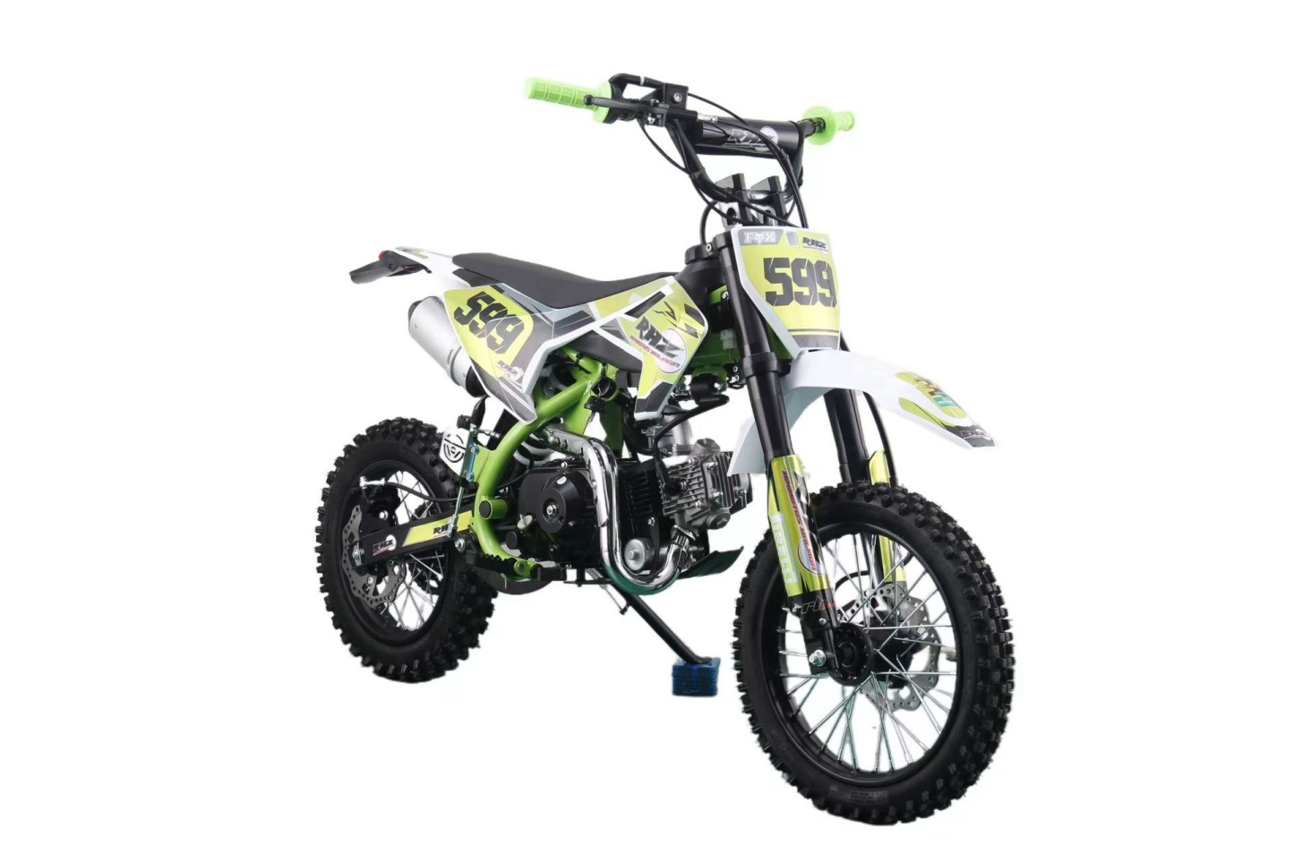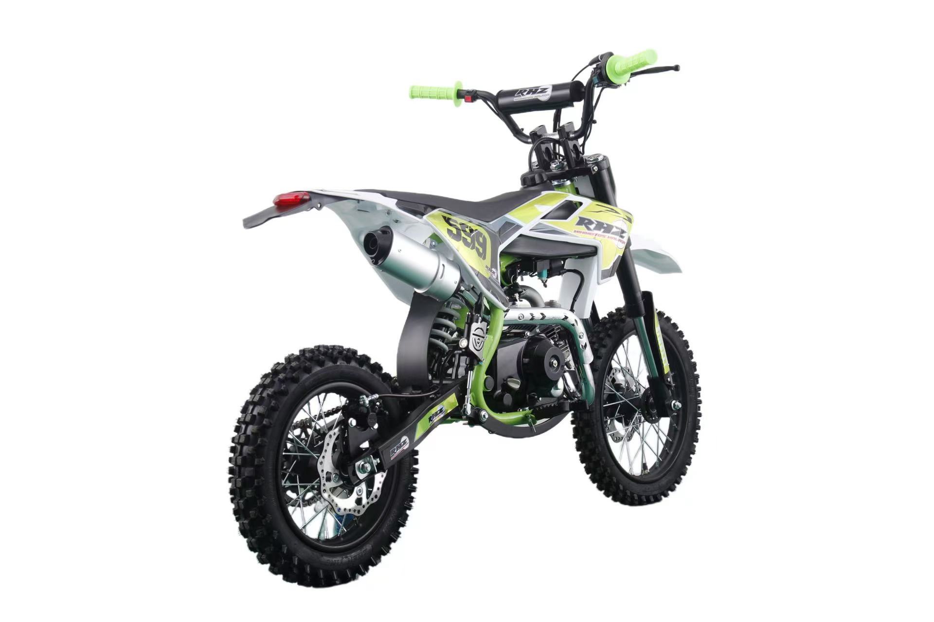 La suspensión avanzada, que incluye una horquilla invertida en la parte delantera y un amortiguador hidráulico en la parte trasera, proporciona una conducción suave y estable, incluso en terrenos difíciles. Las ruedas de 14 pulgadas en la parte delantera y 12 pulgadas en la parte trasera, con robustos radios, ofrecen un agarre excepcional en una variedad de superficies, brindando confianza a los jóvenes pilotos mientras exploran nuevos caminos.