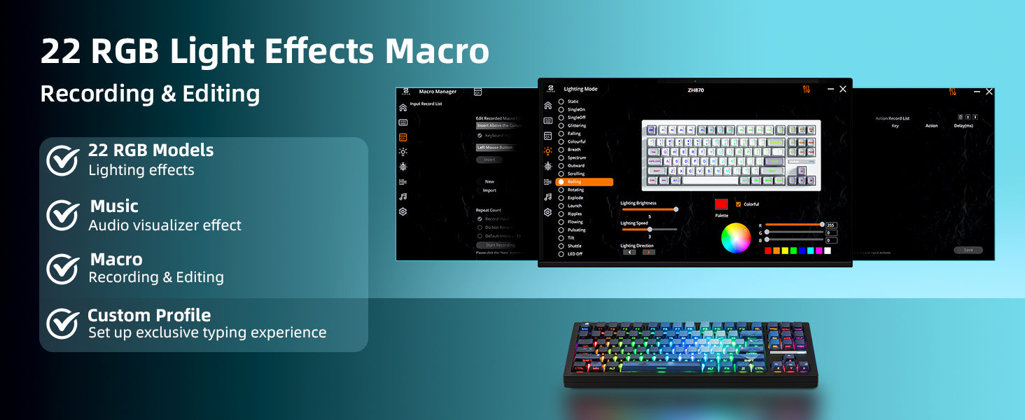 - 【22 RGB Modes with South-Facing & Side Lighting】Enjoy vivid RGB with 22 preset lighting effects, including side-glow and south-facing LEDs. Combined with OEM-profile keycaps and high transparency legends, the lighting looks clean, consistent, and immersive.