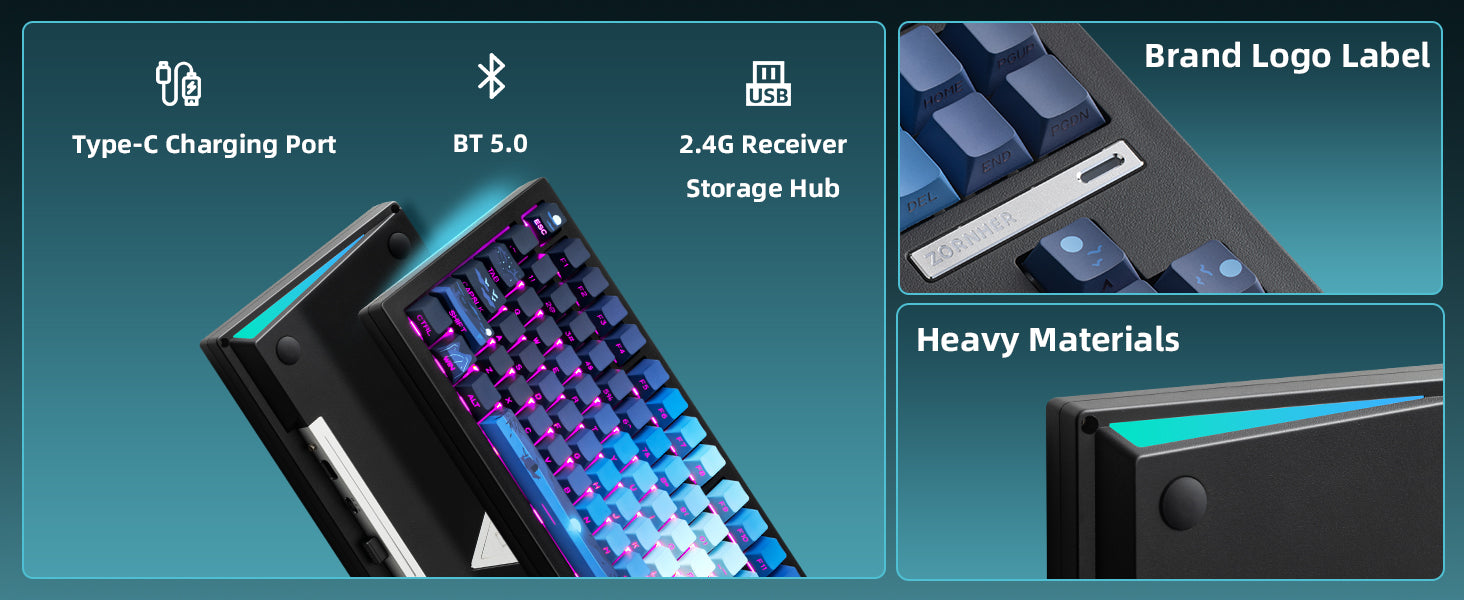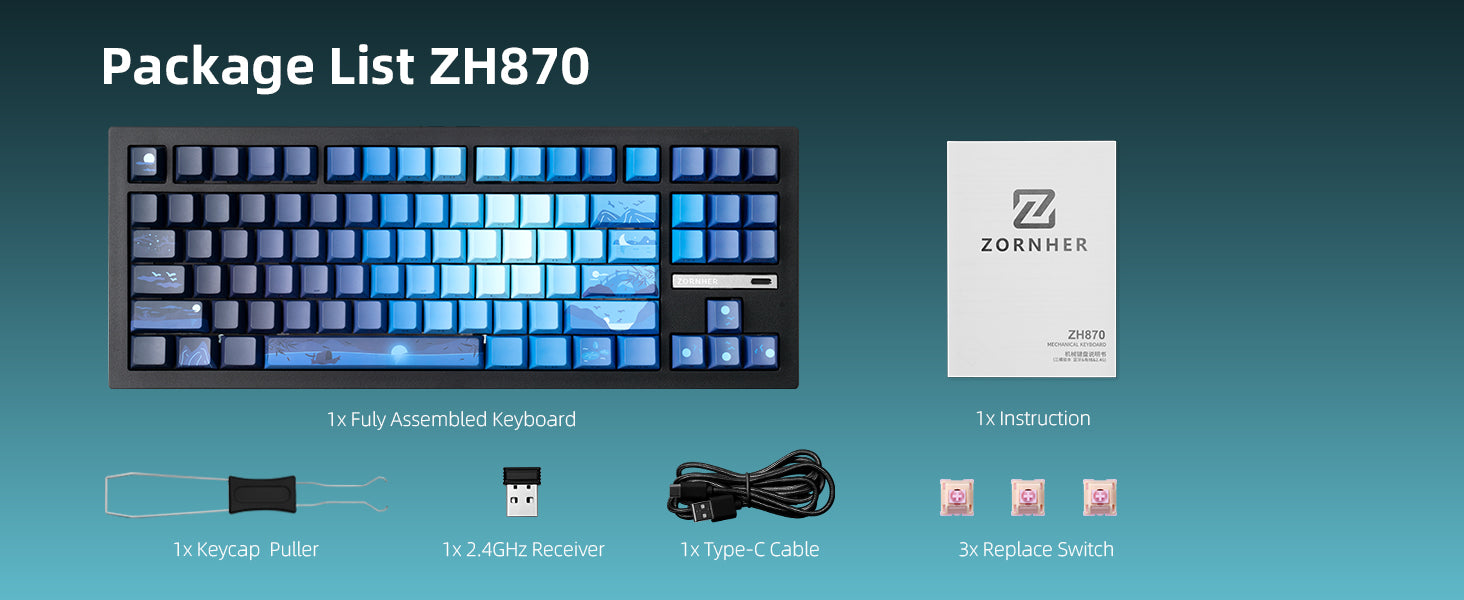- 【Ergonomic & Durable Build with Style】With OEM-profile keycaps, and stable large-key tuning, the ZH870 provides lasting comfort and control. Its 2.54lb weight ensures stability on your desk, while the rugged IMD finish delivers a refined, premium feel.