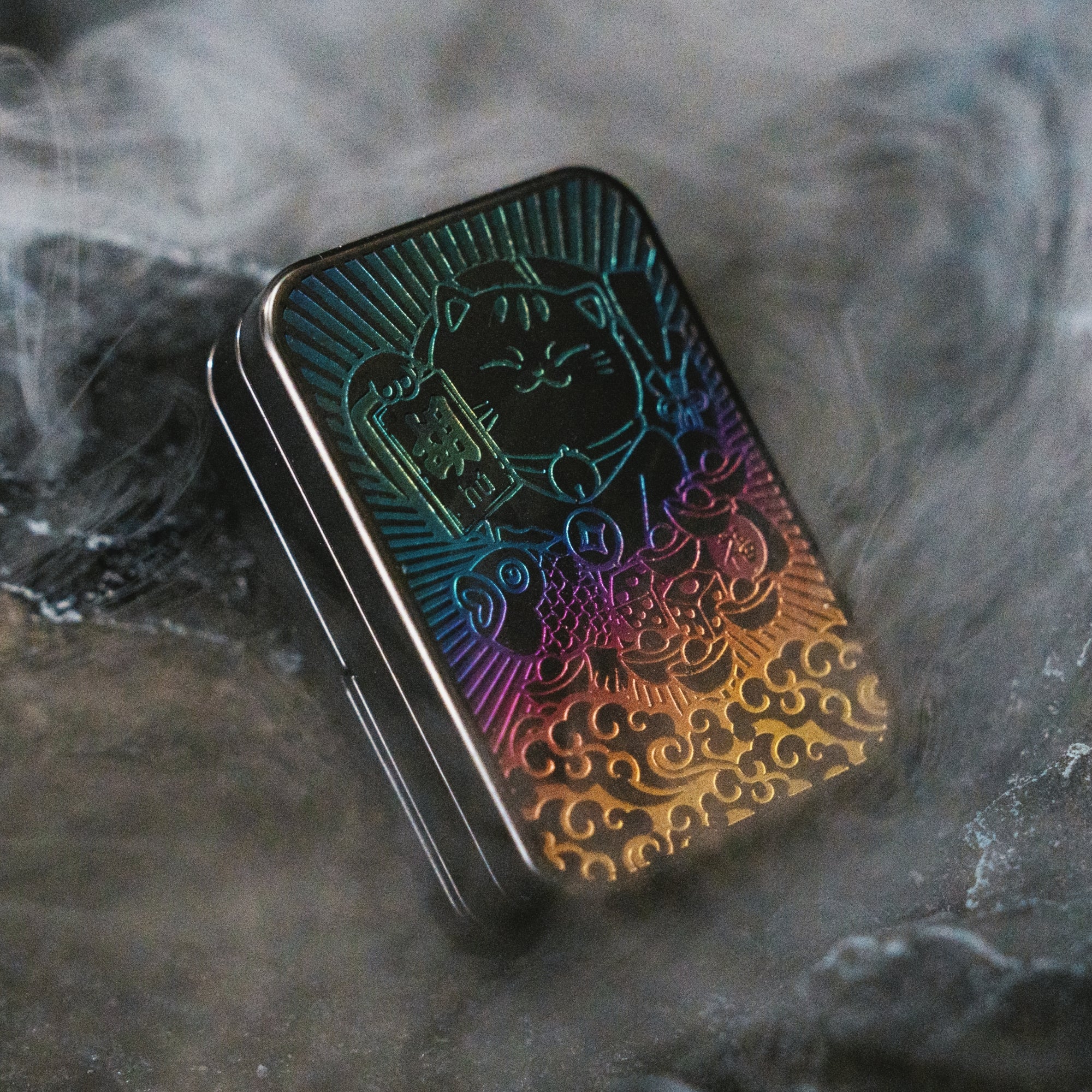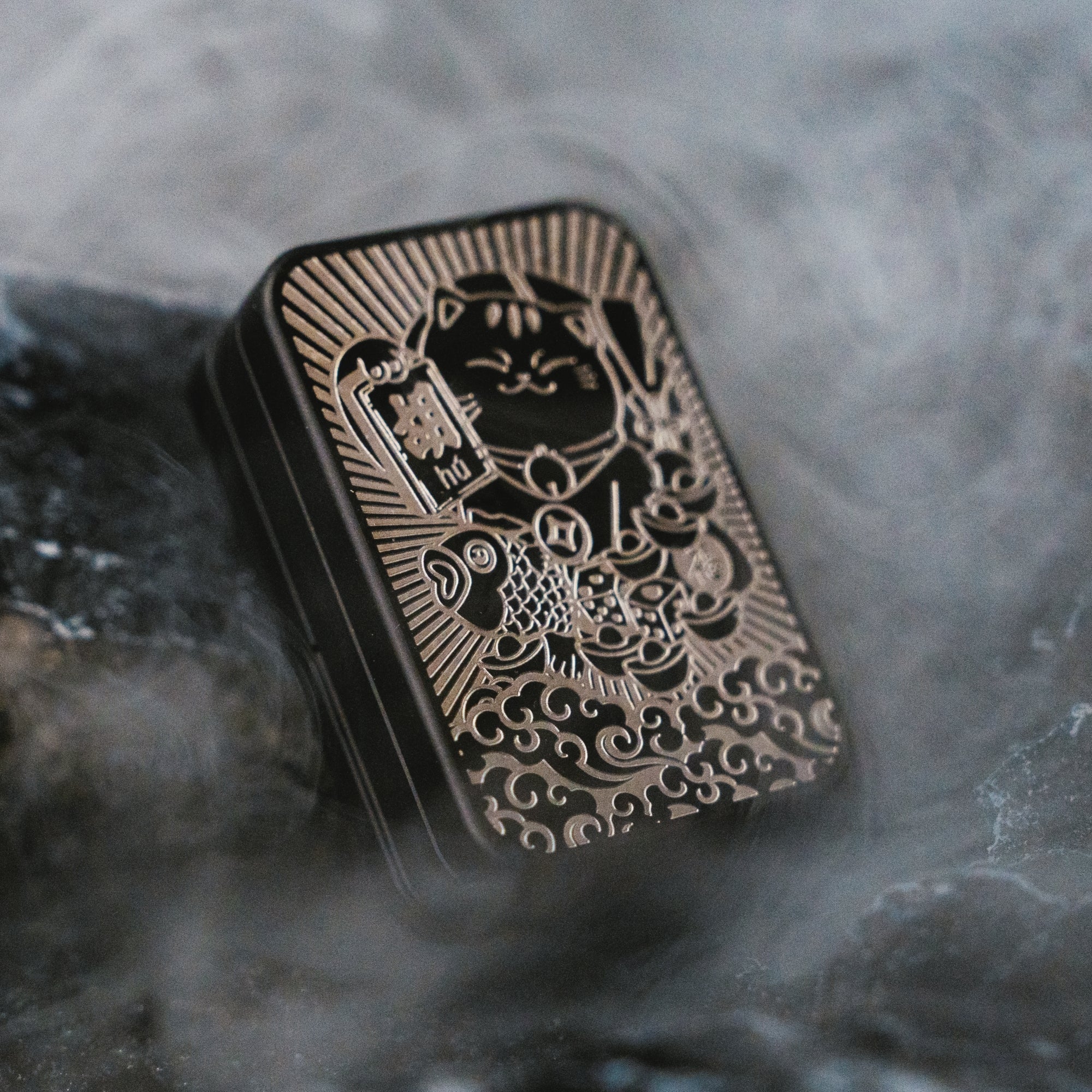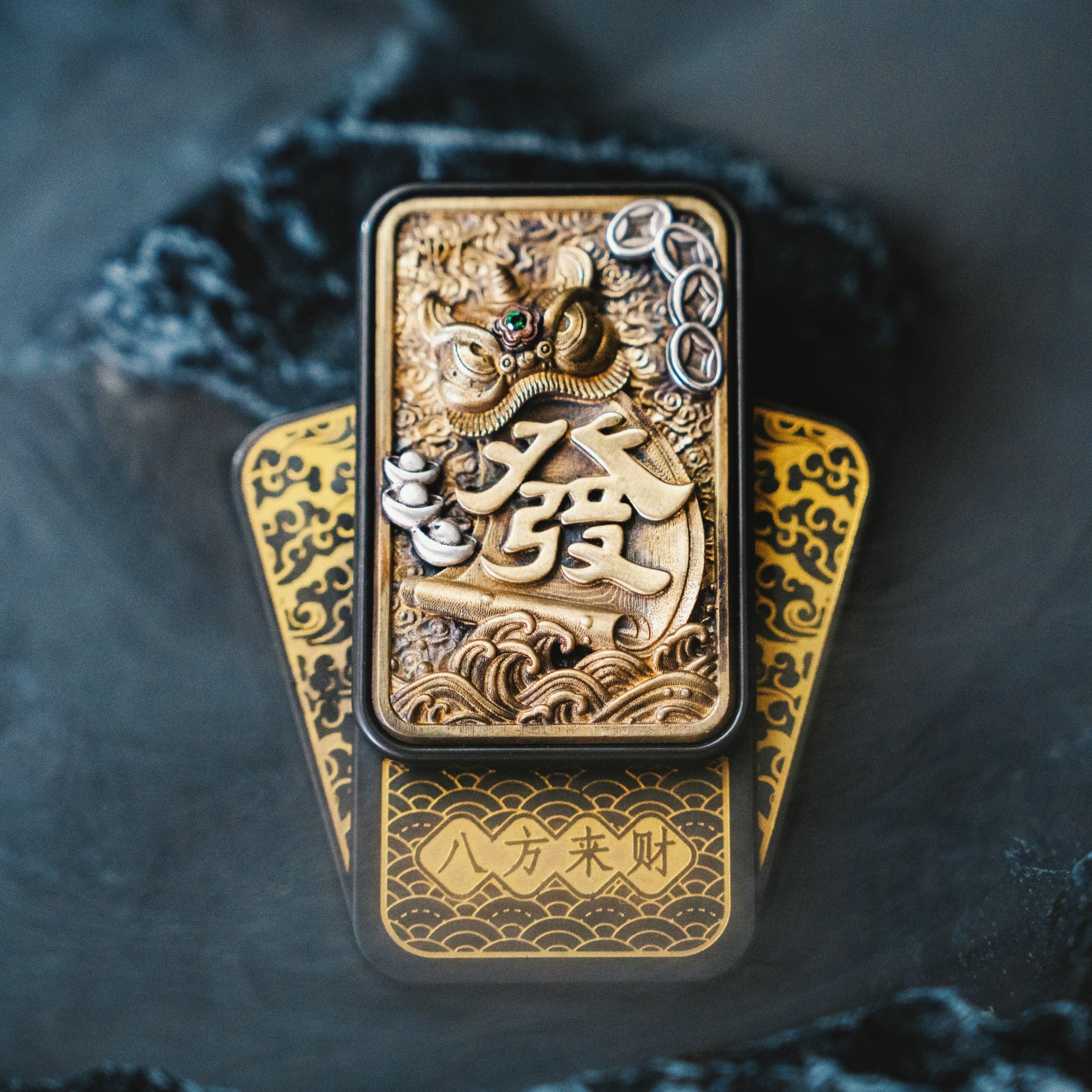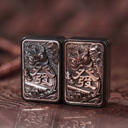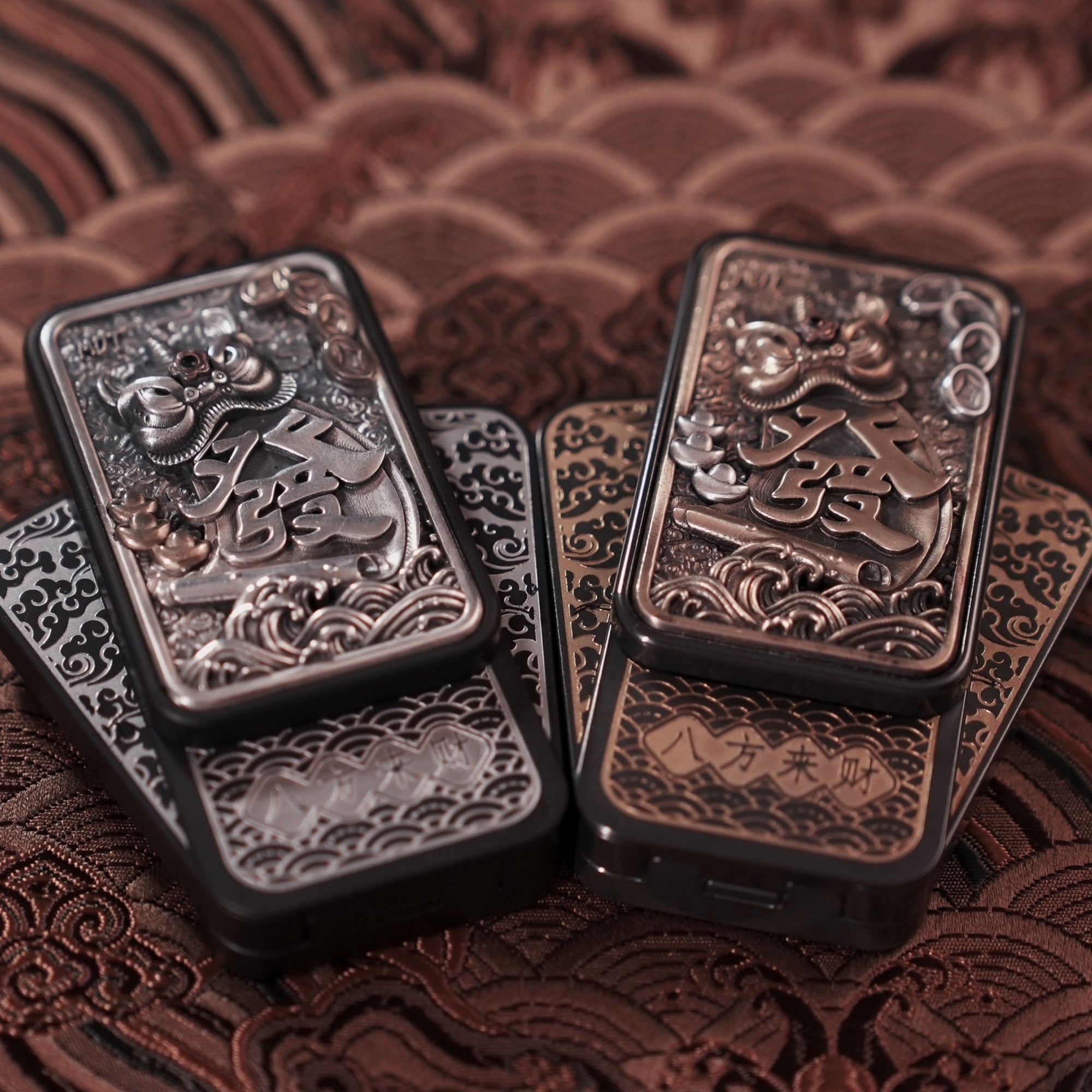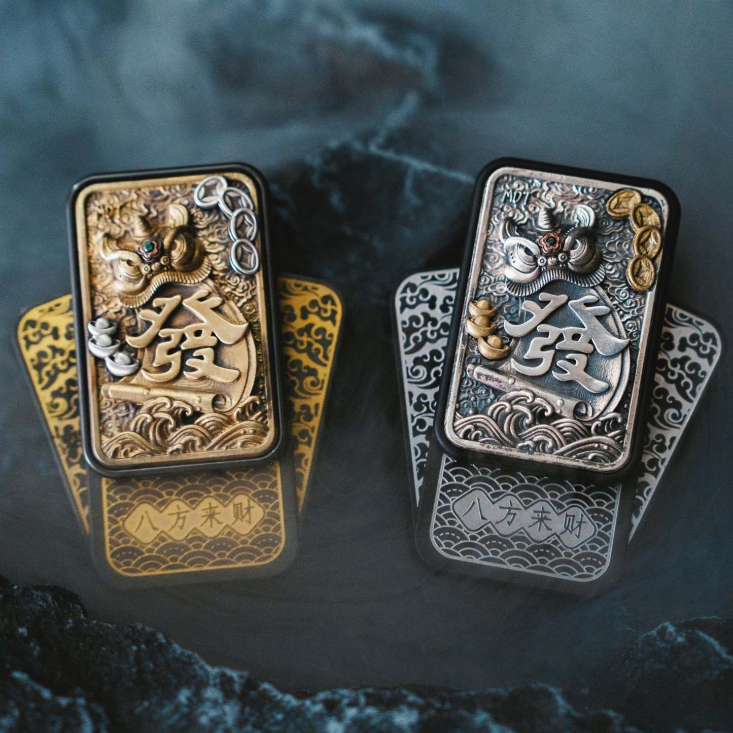 - Ti Mahjong: Body is Ti. Middle layer is SS. Upper layer patch is silver. With some bronze and brass inlay.