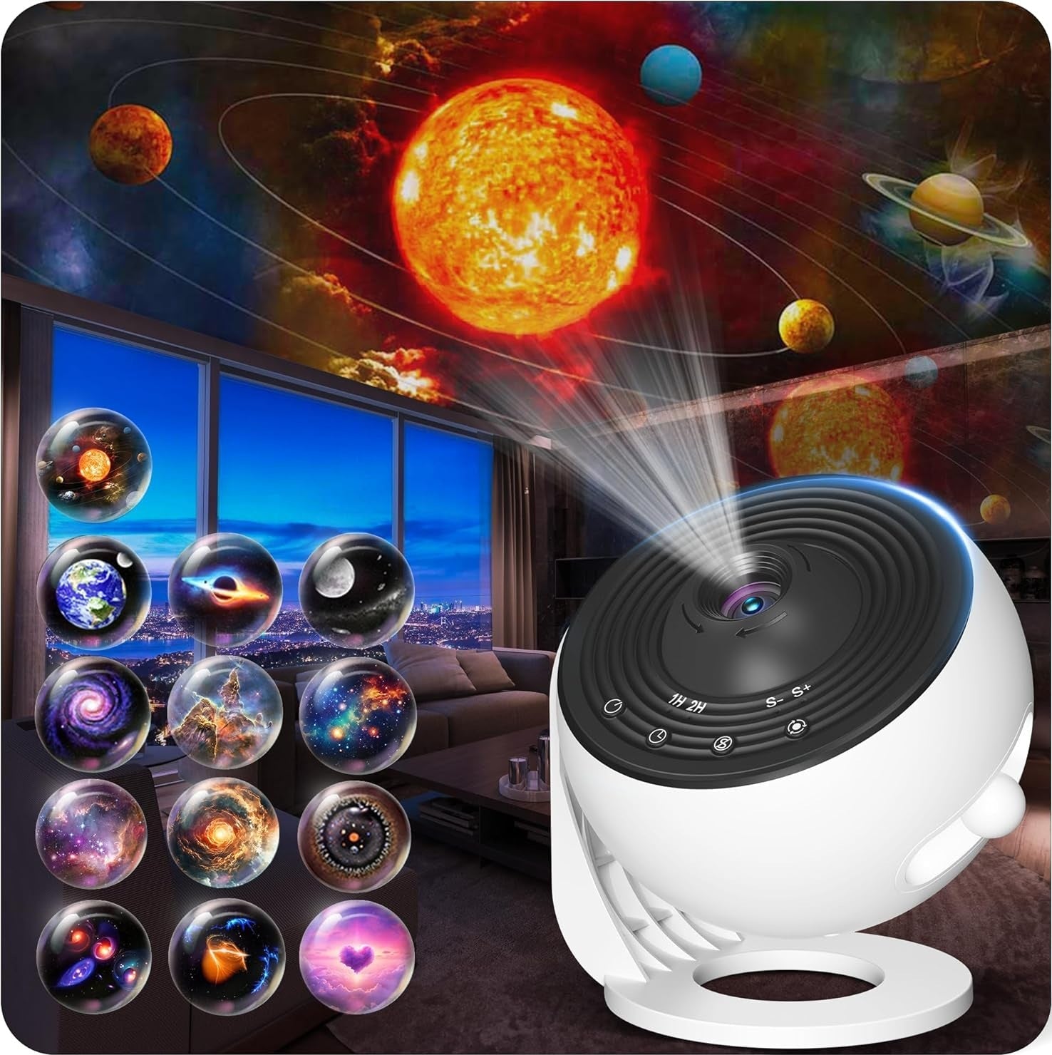 - 13 Captivating Effects: Includes 13 high-definition film discs showcasing the Solar System, Earth, Moon, and various galaxies, delivering vibrant projections that mesmerize.